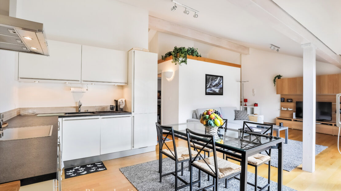 Au dernier étage d’un ancien immeuble villageois entièrement rénové avec gout, il est composé d’un hall d’entrée prolongé d’un vestiaire, d’un séjour lumineux prolongé d’un balcon, d’une cuisine ouverte équipée, 2 chambres à coucher, 1 salle-de-bain et une salle-de-douche-wc. Cave. Parking intérieur.